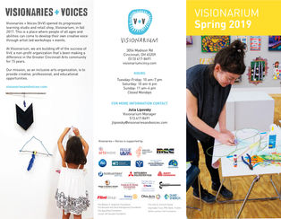 The Visionarium was a non-profit art space for people of all ages and abilities. I had the privledge of supporting them through Graphic Design needs: web, social media, marketing, internal signage and displays, events, classes, and many other wonderful things.